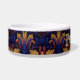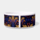 Het product heeft een herhalend patroon geïnspireerd op een klassiek, barok-stijl ontwerp. Het centrale motief lijkt op een gestileerde fleur-de-lis of een elegante pluim, weergegeven in levendige gouden, rode en oranje tinten met gradiënteffecten. De achtergrond is diep marineblauw, waardoor een rijke contrastverhouding ontstaat die de ontwerpelementen pop maakt. Het patroon heeft een luxe en vorstelijke uitstraling, met symmetrische detaillering en vloeiende rondingen die het een verfijnde en tijdloze uitstraling geven.