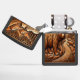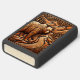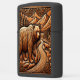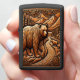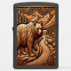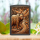 Een prachtig vormgegeven op leer geïnspireerd beer staat trots bij een stromend riviertje met bergachtige uitzichten.