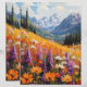 Dit prachtige schilderij vangt de levendige schoonheid van een veld van wilde bloemen, met een verbluffende reeks kleuren die over het doek dansen. De delicate bloesems bevinden zich tegen een majestueuze achtergrond van bergen, waardoor een harmonieuze mix van de pracht van de natuur ontstaat. Ideaal voor het verbeteren van elke ruimte, dit kunstwerk roept een gevoel van rust en waardering op voor het buitenleven, waardoor het een perfecte aanvulling is op zowel het interieur als de inrichting van de kantoor.