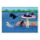 Whimsy en grappig schilderij van Lakeside Labrador Retriever, geschilderd door Naomi Ochiai uit Japan. Zwarte labrador, gele labrador, chocolade labrador zijn in het afbeelding geschilderd!! Lab honden hebben een mooie dag in het meer. Vist en zwemt en een dutje doet. Geweldige geschenken voor hondenliefhebbers die van Labradors houden.