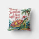 Een grillig kerst wenskaart met een vrolijke waterverf afbeelding van een zeeen schildpad met een feestelijke kerstmuts en versierd met twinkelende kerstverlichting rond zijn schaal, tegen een achtergrond van een wuivende palmboom ook verlicht met warme lichten en een serene turquoise oceaan. De schildpad is beschilderd met ingewikkelde patronen van tropische bloemen in zachte pasteltinten van koraal, lavendel en zeeschuimgroen, terwijl de oceaan glinstert met subtiele hellingen van blauw en zilver, waardoor een vredige maar feestelijke sfeer wordt gecreëerd. "MERRY CHRISTMAS & HAPPY NEW YEAR" verschijnt in een speels, handgeschreven lettertype aan de bovenkant van de kaart, met het interieur dat een schone witte ruimte biedt voor een gepersonaliseerde boodschap en een subtiel, herhalend patroon van kleine schelpen langs de onderkant om het tropische thema te versterken. De algemene toon is luchtig en vreugdevol, perfect voor het verzenden van warme wensen aan vrienden en familie tijdens de feestdagen.