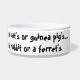 "Mijn kom... niet van een kat of een cavia, niet van een konijn of een fret" kan worden gepersonaliseerd met de formulering die u kiest. Dit is een afbeelding van Cinder, onze schipperke die de baas is, maar zo lief als maar kan zijn.