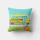 Hé! Wacht op mij! Deze Vangst van de Cartoon van de Bus van de School in de openlucht Pillow zal uw dag een goed begin maken. Het bevat een cartoon tekening van een kind dat een rode, heldere lunchbox draagt terwijl het een gekke dash maakt voor de schoolbus. Het kind draagt een koninklijke blauwe broek en een turkooistisch shirt. Hij loopt een oranje, geplaveid voetpad af. De stoep wordt omringd door het soort groengras dat alleen in de voorsteden voorkomt. Er is ook een wit, korenhek. In de straat zien we een levendige, gele schoolbus met waterramen en glazen deuren. De naam aan de zijkant van de bus is aanpasbaar. Klik op het pictogram Aanpassen om de bestaande tekst te vervangen door je eigen schoolnaam. Achter de bus zien we een aqua sky en de silhouetten van cedar-bomen. De tegenovergestelde kant van de kussen is een oranje steenpatroon en er is voldoende ruimte om aan te passen, als je kiest. Nu bestellen. Je wilt niet te laat zijn.