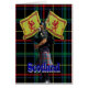 Een grappig hondenkarakter, gekleed als een Schotse bagpiper met een rode kilt op een groene tartan gestreept achtergrond en een patriottische leeuw met overweldigende vlaggen van Schotland en blauw Schotland. Bezoek de VINTAGEPRINTS-WINKEL voor overeenkomende producten en leukere leuke dierencollages.