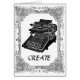 "CREËER" Dit geweldige typemachine-afbeelding kan je favoriete auteur of creatieve persoon alleen maar aanmoedigen. Zou ook in een lijst gaan om een geweldig stukje kunst voor je muur te maken. Blank aan de binnenkant voor je persoonlijke boodschap.