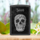 De schedel van de Gothische kop zwart en wit grijs oude textuur brandt lichter. Jouw naam aanpassen. Koel, trendy, modern, enge antiek stijl, een-van-een-soort fotokunstontwerp. Zoek naar passende producten in mijn collectie van de winkel. Afbeelding copyright Marg Seregelyi Fotografie.