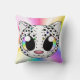 Een schattige cartoon luipaard op een kussen.