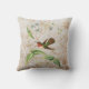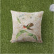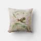 Het vierkant ontwerp van de gooikussens is voorzien van een illustratie van de Scintillant Hummingbird. Een groene en bruine kolibrie met rode keelstokken op een tropisch plant met lichtblauwe bloemen, op een gebroken witte achtergrond met gouden zWIELEN en bloemsilhouettes. Kies uit katoen, polyester of buitenstof.