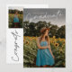 Cette combinaison moderne et élégante d'invitation à la remise de diplômes de photographie élégante comprend une superposition de script et un nom personnalisable, l'école et la photo sur le devant. L'arrière-plan offre des fêtes et des détails de l'événement avec 2 photos supplémentaires. Une excellente façon de présenter votre diplômé.
