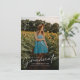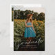 Cette combinaison moderne et élégante d'invitation à la remise de diplômes de photographie élégante comprend une superposition de script et un nom personnalisable, l'école et la photo sur le devant. L'arrière-plan offre des fêtes et des détails de l'événement avec 2 photos supplémentaires. Une excellente façon de présenter votre diplômé.