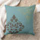 Scroll Damask Art I Bruin Goud (lijn) Blauwgroen Kussen