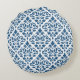 Scroll Damask Big Ptn DK Blauw op Wit Rond Kussen