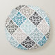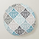 Scroll Damask Groot Patroon Teals Browns Wit Rond Kussen