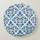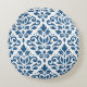 Scroll Damask LG PTN DK Blauw op Wit Rond Kussen