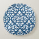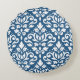 Scroll Damask LG PTN Wit op DK Blauw Rond Kussen