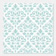 Scroll en blad decoratieve damast oppervlak patroon ontwerp in lichte blauwgroen kleurdetails op een witte achtergrond.