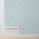 Scroll Damask Pattern Light Blauwgroen op wit Behang