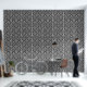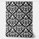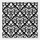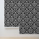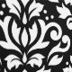 Scroll en blad decoratief damast oppervlaktepatroon ontwerp in wit detail op een zwarte achtergrond.