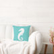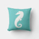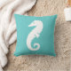 SEAHORSE BLANC sur oreiller bleu sarcelle