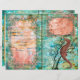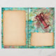 Prachtige vellen met dubbele journaling. Bladzijde 1: zeepaardje met prachtige turkooistische lijsten met oranje roze centers. Bladzijde 2: Lobster met gescheurde vellen met lijnen voor eenvoudig schrijven. Achtergrond zijn zeepbellen en oud hout met zeewier.