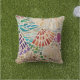 Voeg dit decoratieve kussen toe aan uw geduld, tuin of strandhuisdek. Het is voorzien van een foto van een originele, op het strand geïnspireerde mozaïek gemaakt van glas, kiezels en schelpen. Originele mozaïek © Michele Davies