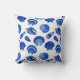Digitaal verbeterde, illustraties van een verscheidenheid aan zeeschelpen weergegeven in een conté krijteffect - donkermarineblauw / indigoblauw op een wit achtergrond werpkussen