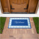 Deze deurmat, die in de grote maat wordt getoond, maakt deel uit van het "Seaside"-collectie en heeft leuke zeepaardjes in Blue/Green rondom de randen van de deurmat. In Royal Blue heeft deze mat coördinerende strepen van Sky Blue, Cornflower Blue en White. Welkom geschreven in fancy schrift in het centrum. Pas dit ontwerp aan of koop zoals afgebeeld.