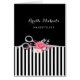 Une carte de salon de coiffure à rayures noires et blanches à la mode avec une paire d'élégants ciseaux de coupe de cheveux de couleur argent faux, agrémentés d'une floraison de belles fleurs roses et or. Personnalisez ce magnifique design de cheveux et de beauté en ajoutant le nom de la coiffeuse ou esthéticienne. Impression plane, NON métallique.
