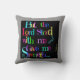 Carreau de vers d'écriture sainte ; Mais le seigneur Stood avec moi et m'a donné la force (2 Timothy 4h17), texte multicolore sur le noir, sur le coussin gris