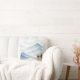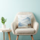 A tranquil watercolor throw pillow featuring soft blue, misty mountains and a rustic cabin. Perfect for adding a peaceful, minimalist, or cozy rustic touch to your sofa or bed.