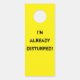 Dit hilarische deurhangerbord is perfect voor introverte mensen. Het heldere gele design zegt: Go Away! in vet gedrukt, donker aan de voorkant en zegt: "Ik ben al verstoord! op de achterkant!