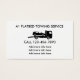 Modèle de carte de visite de remorquage automobile dans un design simple avec un graphique de camion plat et une disposition simple en noir et blanc conçu pour être customisé en ligne. Créé pour un service d'épave, de remorqueur ou de transport automobile.