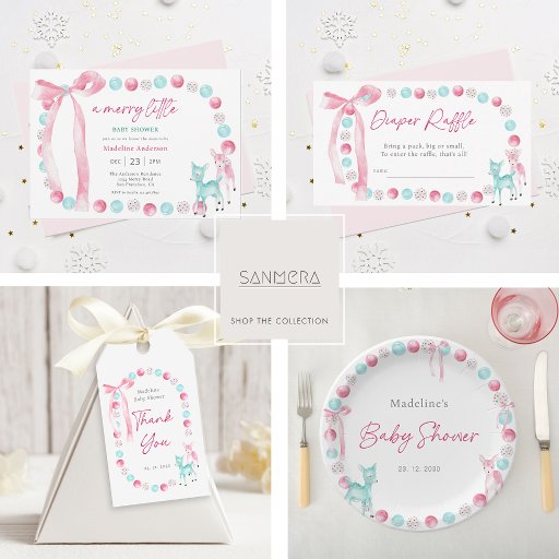 Cette adorable serviette de baby shower est ornée d'un motif fantaisiste parfait pour célébrer l'arrivée d'un petit. Les illustrations d'aquarelle douce présentent des rubans rose sucré, des sphères de couleur pastel dans les tons bleu et rose, et des cerfs roses mignons et doux, ainsi que des boules poissonnées joueuses, le tout contre un arrière - plan blanc propre. Les éléments délicats et charmants créent une esthétique joyeuse et chaleureuse, faisant de ces serviettes un choix idéal pour un baby shower, ajoutant une touche d'élégance et d'humour à la célébration.
