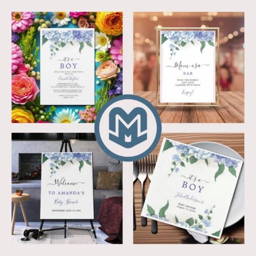 It's A Boy Blue Hydrangea Botanical Baby ShowerConçu par Max Marshall