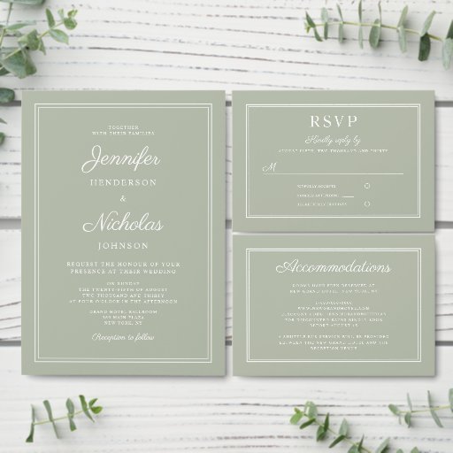 Elegant Sage Green Script Wedding SuiteConçu par Maggie B Design
