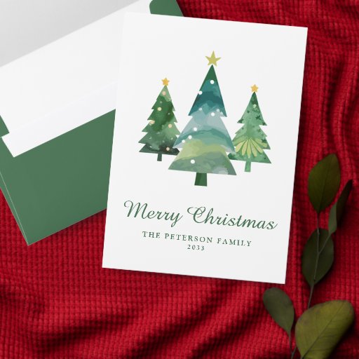 Serviette En Papier Élégant Script Aquarelle Arbres de Noël