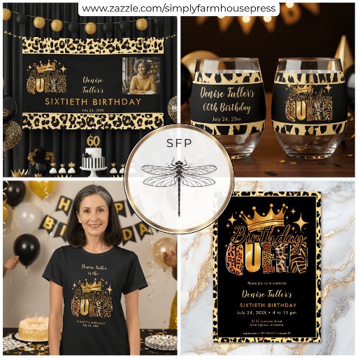Modernes, chics et amusants, ces serviettes en papier d'anniversaire célèbrent la reine sauvage dans chaque femme ! Avec un mélange de léopard, de tigre et d'autres gravures sauvages, ce design noir, orange et or est une façon amusante de célébrer un anniversaire marquant. Créé par Simply Farmhouse Press.