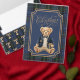 This blue Christmas napkin has a cute preppy bear holding a gift.