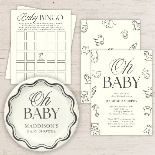 Minimal hand drawn gender neutral baby shower napkins are the perfect addition to any simple, modern, or elegant baby shower. These cards feature a black and white design that will go perfectly with any of your other baby shower supplies and decorations.