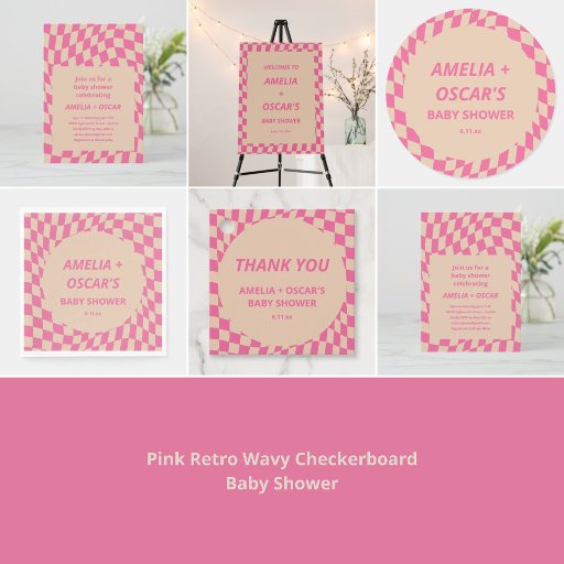 Pink Retro Wavy Checkerboard Baby ShowerConçu par Opal Ellery