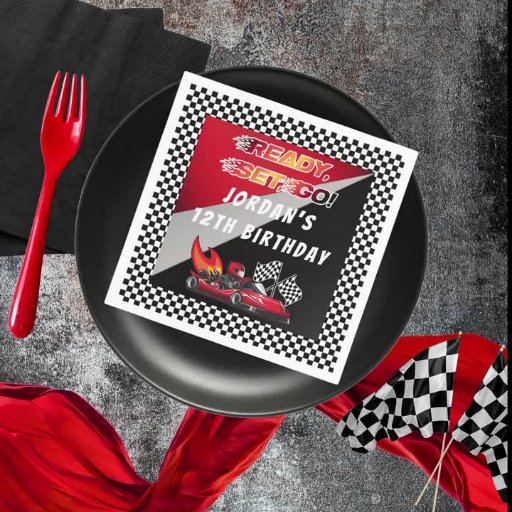 Serviette En Papier Red | Black Go Kart Racing Anniversaire