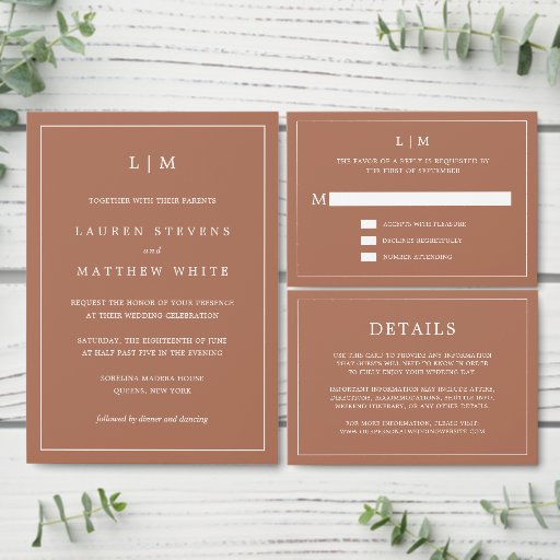 Simple Terracotta Monogram Wedding Invitation SetConçu par Cynthia Rinne