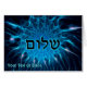 Donkere tekst met de tekst "Shalom" (Hebreeuws: vrede) bovenop een aansteker blauw fractaal afbeelding. Voeg je eigen aanvullende tekst toe.