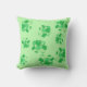 Een shamrock is gemaakt van een collage van shamrocken, in groene tinten, en is op verschillende plaatsen op aangepaste kussens gedrukt. Er zijn meerdere shamrocken aan één kant, en één van deze shamrocks aan de achterkant. De achtergrondkleur van lichtgroen kan worden aangepast.