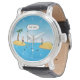 Horloge, Vintage Zwart Leer