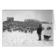Shepherd met een kudde in de sneeuw. Foto van Charles Belden op de Pitchfork Ranch bij Meetse, Wyoming.