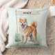 Add cozy charm to your home with this Shiba Inu throw pillow featuring a watercolor design and customizable name flag. Ideal for breed lovers.