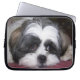 Een Cute white en Black Shih Tzu hond op een roos/roze deken. Schattig Hondenras van de Fotograaf van het afbeelding prints van de Foto van de Schip Tzu.
