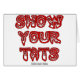 Show Your Tats is gemaakt met tribal tattoo stijl belettering en een bloedrode kleur.