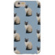 Telefoonhoesje met blauwe achtergrond en siamese kattenprint.